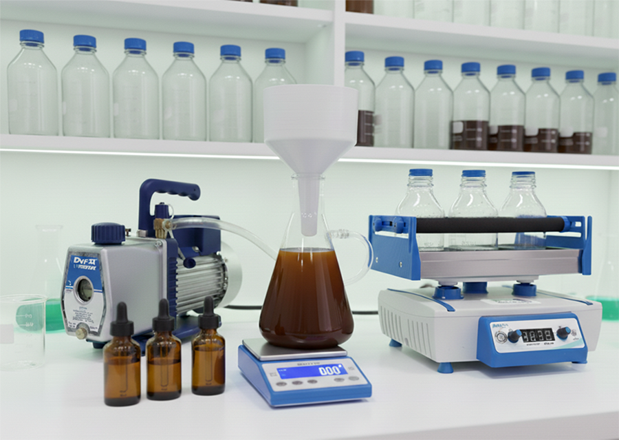 La homogeneidad de cada lote se logra utilizando agitadores magnéticos y balanzas analíticas, que miden las proporciones al miligramo.