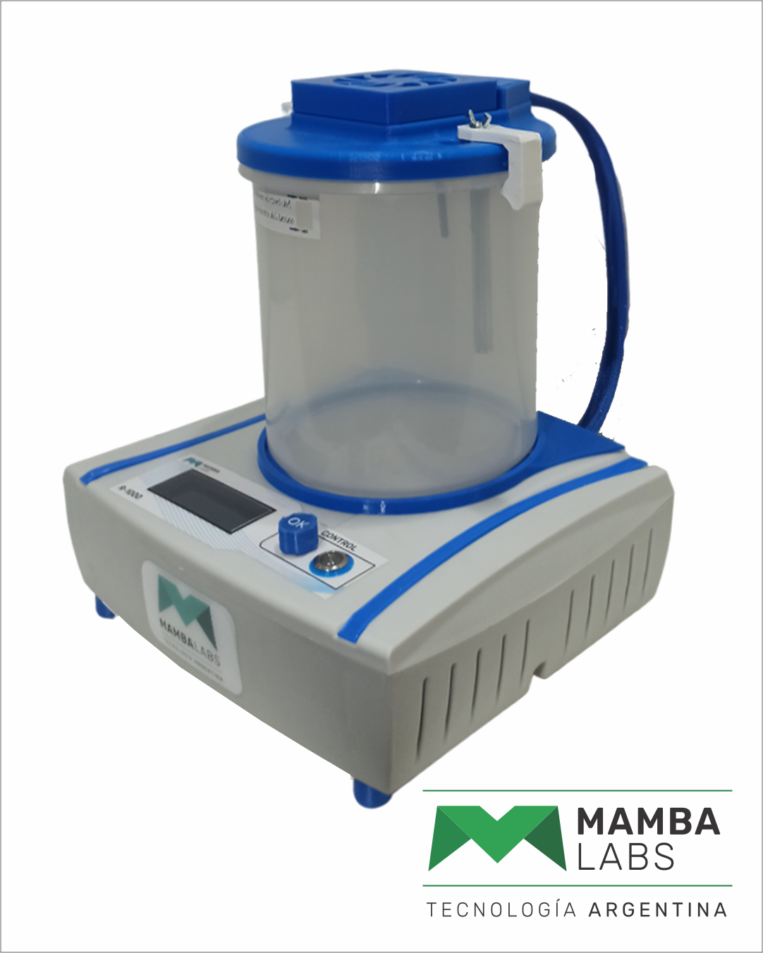 Además, el equipo cuenta con un forzador de aire capaz de impedir el ingreso de partículas a la solución durante el proceso y a su vez colabora con la reducción.